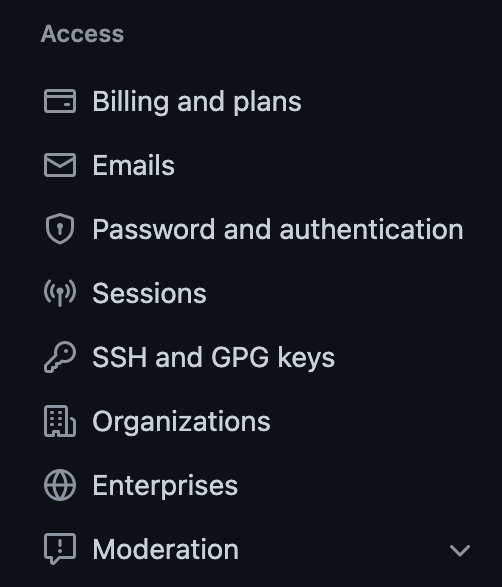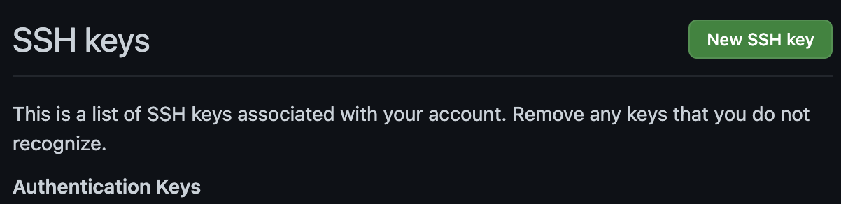 - 왼쪽 네비게이션에서 SSH and GPG keys 클릭 → 나타난 화면에서 초록색 버튼 New SSH Key 클릭