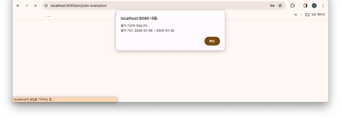 평가 기간을 지정하면 해당 기간 내에만 url에 접근 가능하고, 기간 외에 접근 시 평가 기간이 아니라는 alert창과 함께 로그인 화면으로 리다이렉트되도록 했다.