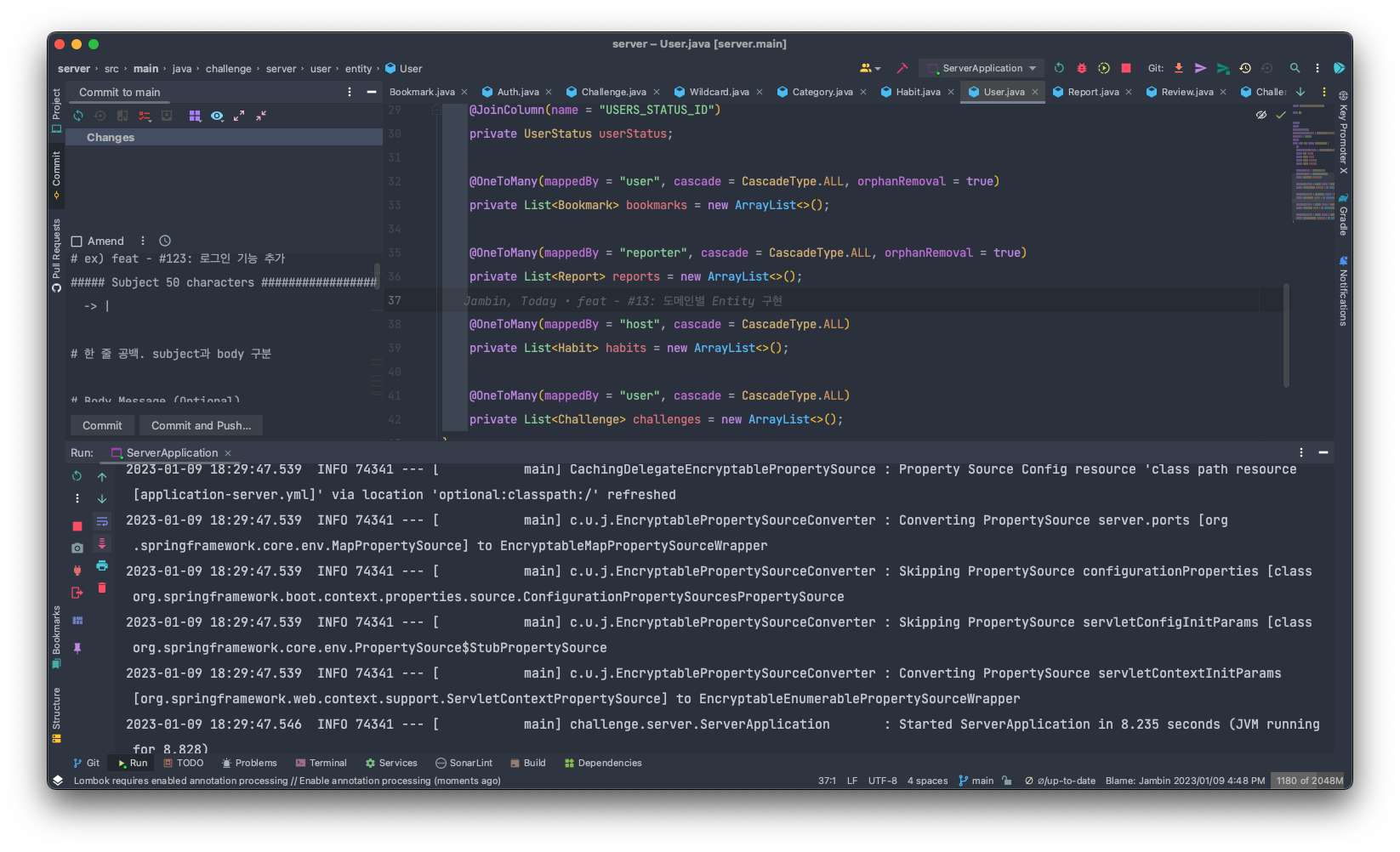 Caused by: org.hibernate.AnnotationException: mappedBy reference an unknown target entity property: challenge.server.habit.entity.Habit.user in challenge.server.user.entity.User.habits