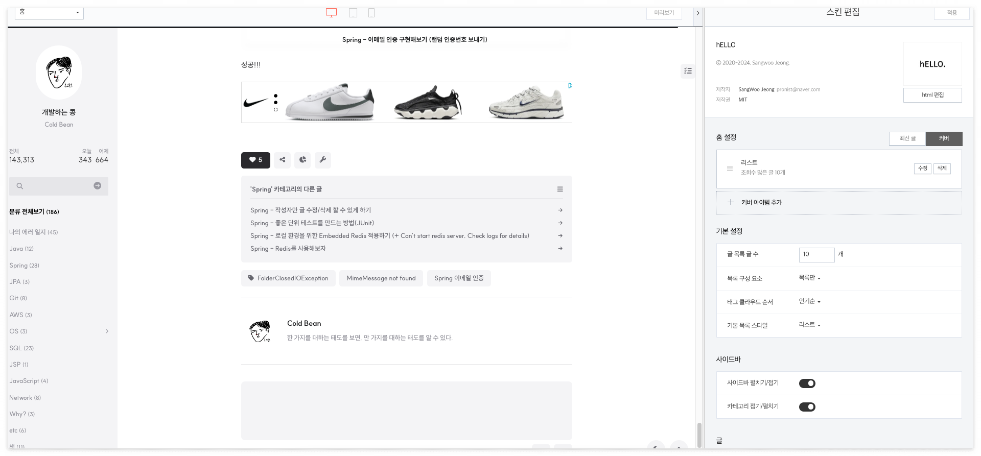 여러 블로그를 돌고 돌아 티스토리에 정착하면서 hELLO 스킨을 처음부터 사용했다. (hELLO 스킨을 개발해주신 정상우님 감사합니다.)