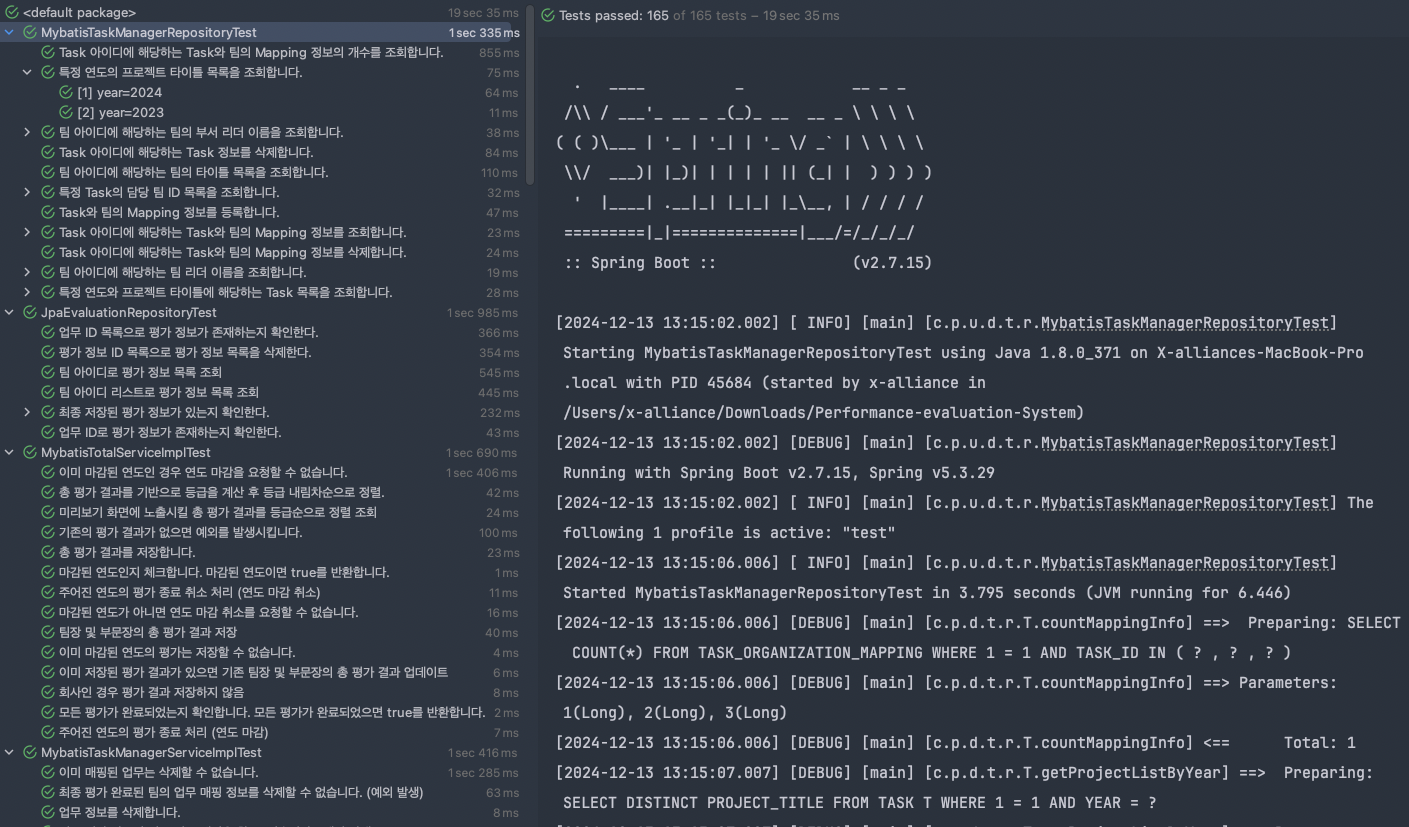 이런 경험을 통해 테스트 코드의 중요성을 더욱 실감하게 되었다. 테스트 코드가 있었다면 변경사항 검증이 더 효율적이고 신뢰할 수 있었을 거라고 생각한다. 이후 혼자 진행하는 프로젝트를 맡게 되었다. 테스트 코드를 작성하면서 개발을 하고싶었지만 일정에 맞춰 빠르게 개발을 해야 했기 때문에 테스트 코드를 작성하지 않고 개발을 진행했다. 이후 Mybatis에서 JPA로 마이그레이션하는 작업을 하면서 단위 테스트를 작성하기로 결정했다.