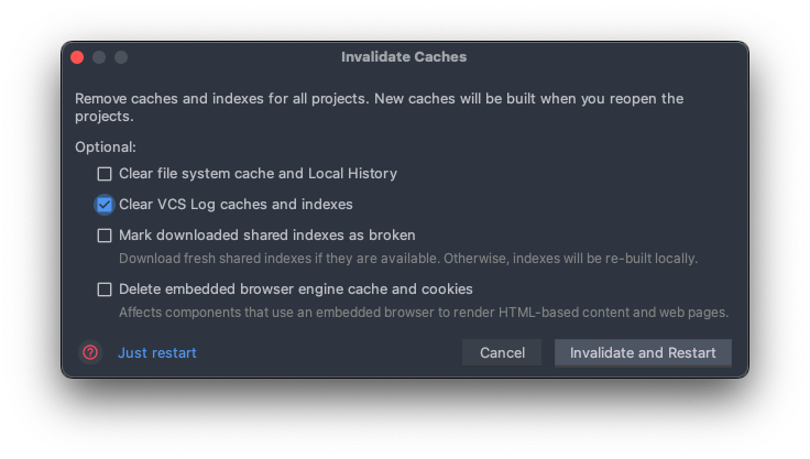 IntelliJ에서 커밋 히스토리 확인을 위해 Git Log 화면을 열었는데 빈 화면으로 나왔다.