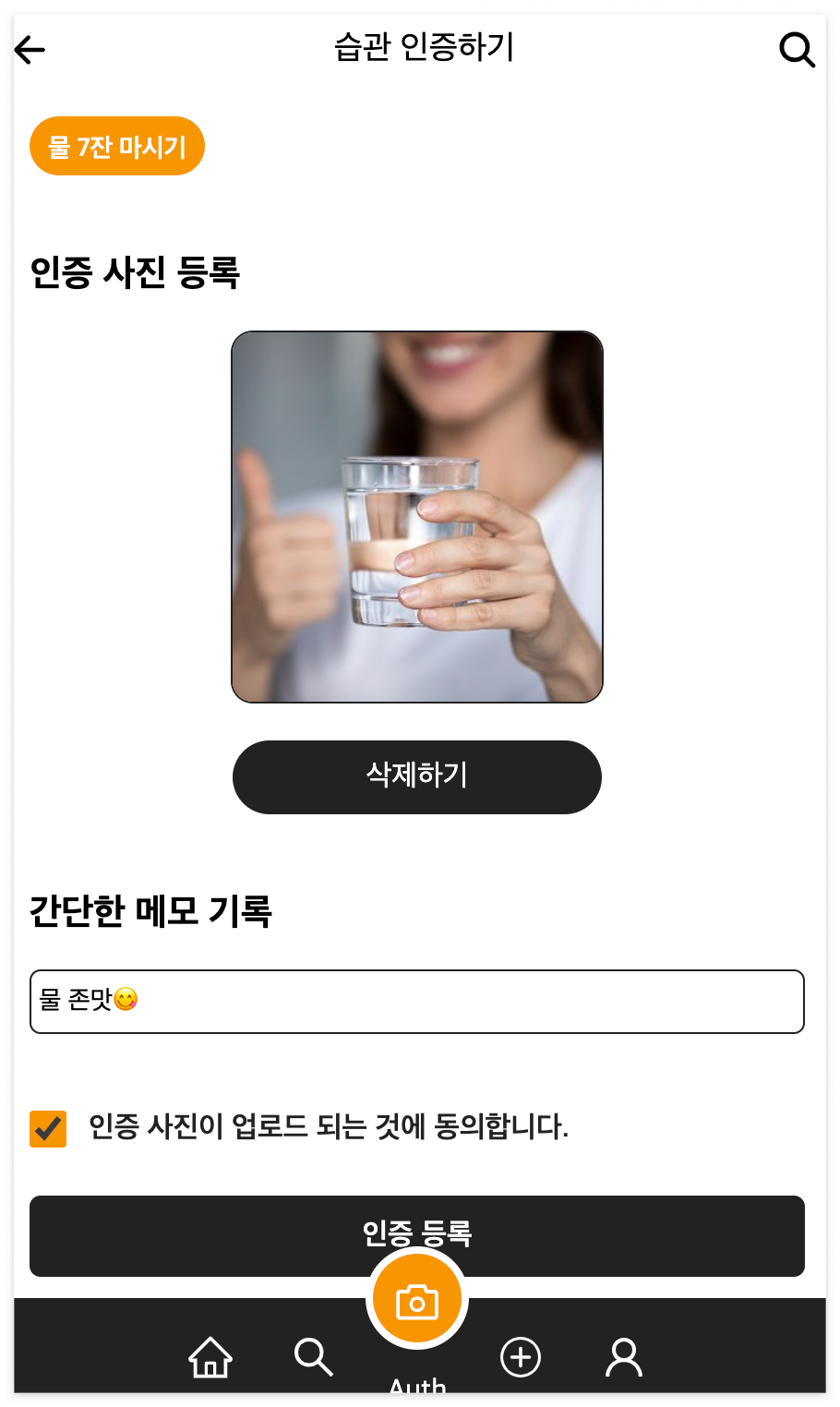 66Challenge에서 물 마시기 챌린지의 인증 사진 등록을 통해 이미지가 잘 조회되는 것을 알 수 있다.