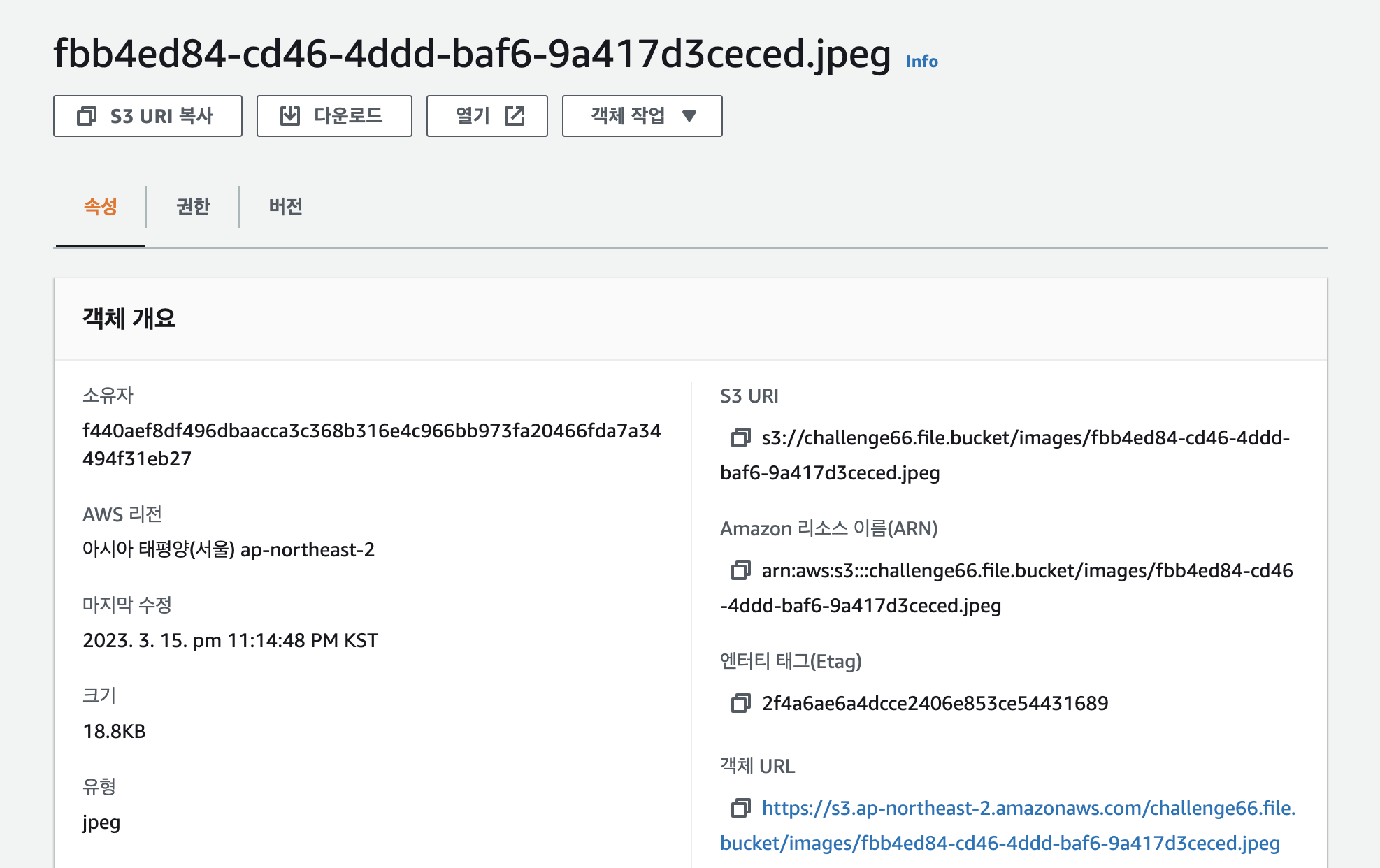 bucket: challenge66.file.bucket # s3 버킷 이름
