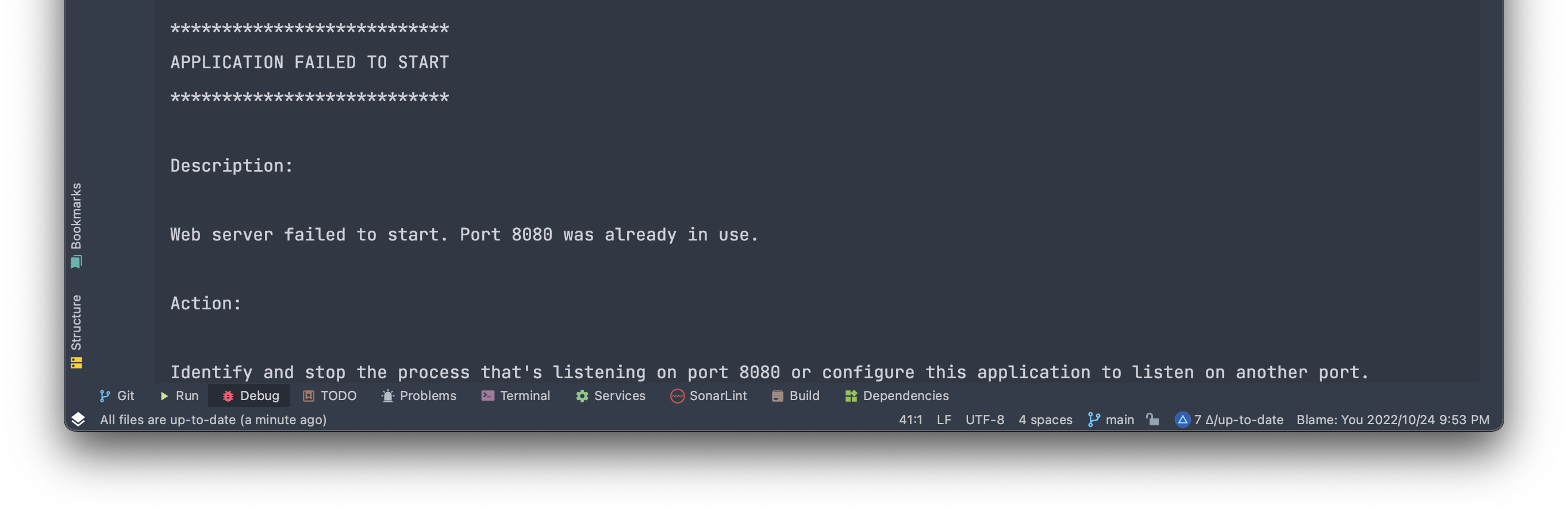 org.springframework.boot.web.server.PortInUseException: Port 8080 is already in use
